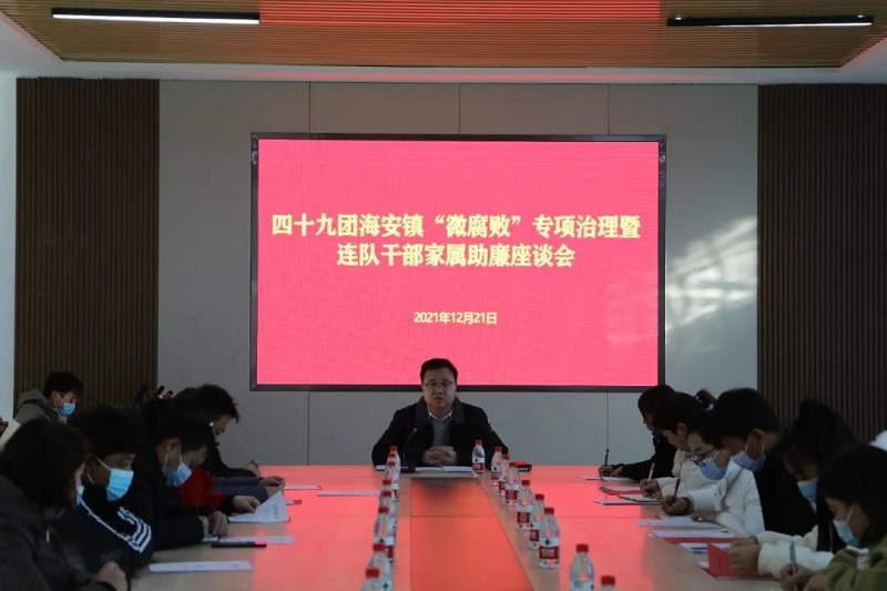 为深入学习贯彻习近平总书记关于“注重家庭、注重家教、注重家风”的重要指示精神,进一步倡导清廉家风,筑牢反腐倡廉家庭防线。12月21日,四十九团海安镇邀请30余名连队党支部书记、连长家属开展助廉座谈会,引导全团广大干部职工家庭自觉投身良好家风建设。