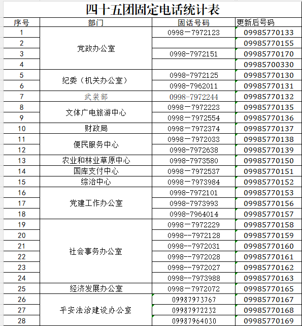 四十五团固定电话统计表