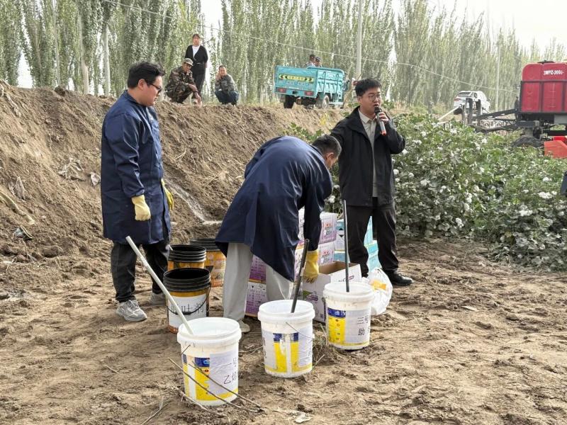 现场会以“技术讲解+现场演示+经验交流”模式展开,将先进实用的脱叶喷施技术送到田间地头。会上,农业技术专家对团场棉花的生长和吐絮情况作详细介绍,并围绕脱叶剂选择、脱叶催熟剂作用原理、施药安全等方面进行了细致讲解。与此同时,通过现场喷施作业演示,进一步强调脱叶剂喷施的重要性。