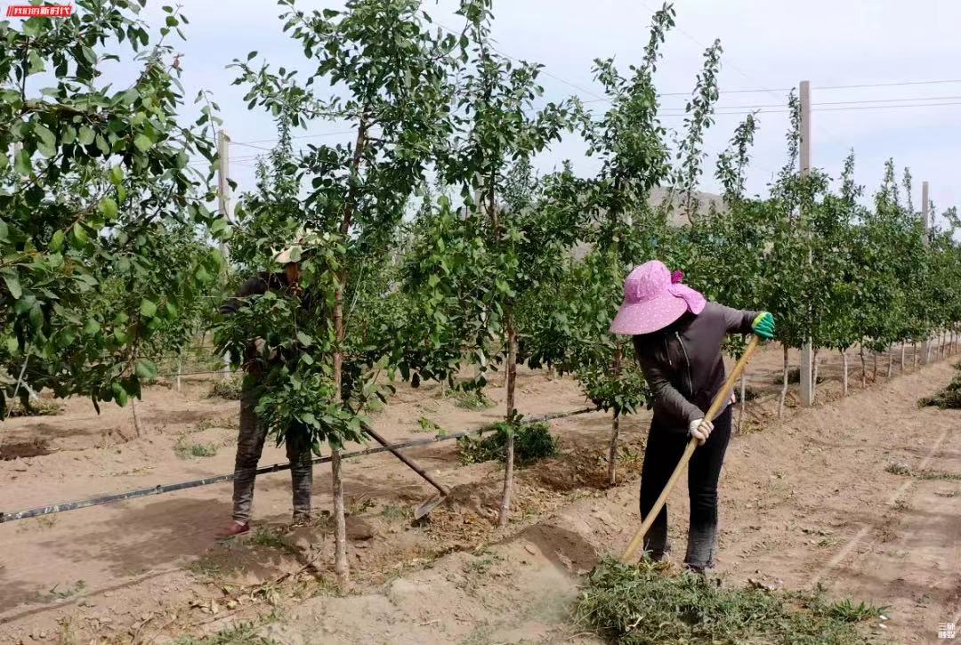 五十三团金胡杨镇良种连连队立足当地实际,通过建设标准化的示范果园,引导职工种植林果从产量到质量的转变,推广规模化、标准化、优质化的种植模式,大力开展香梨老果园标准化提质增效改造,全面提高香梨种植品质,促进香梨产业增收、职工致富。