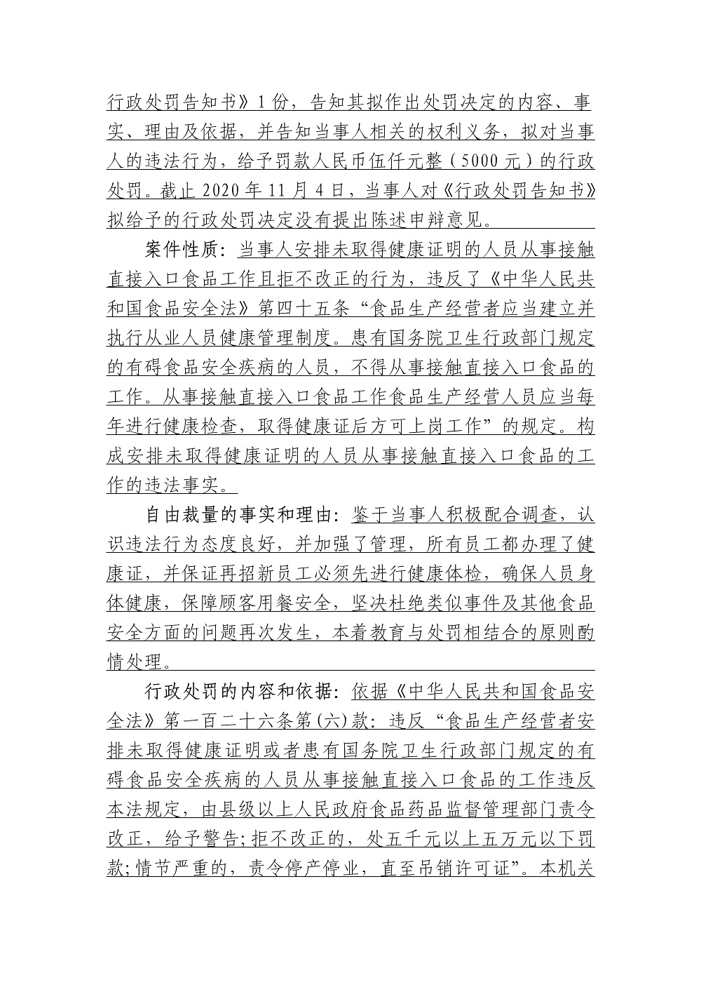 武丽莉安排未取得健康证明的人员从事接触直接入口食品工作案〔2020〕-87