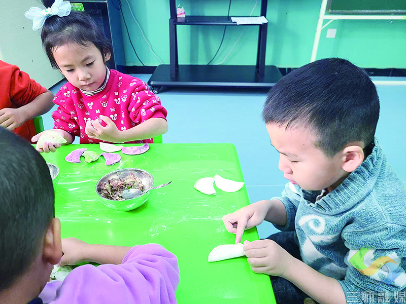 图为 四十四团幼儿园幼儿动手包饺子,培养合作、分享的能力,让幼儿园生活更加丰富多彩。 邓艳 摄