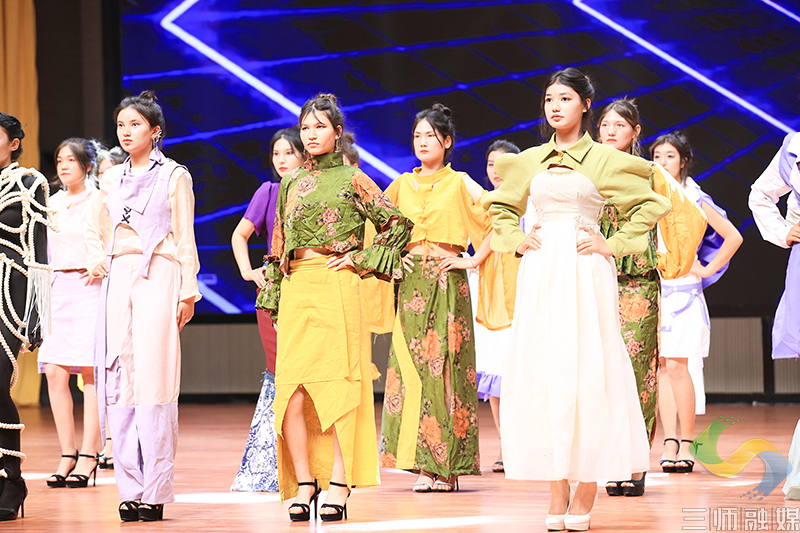 图为 图木舒克职业技术学院学生身着自己设计的服装进行展演。李新莉 摄