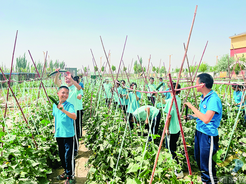 图为 四十四团第二中学学生们在劳动教育实践基地,感受劳动之美、收获之乐。 邵红 摄