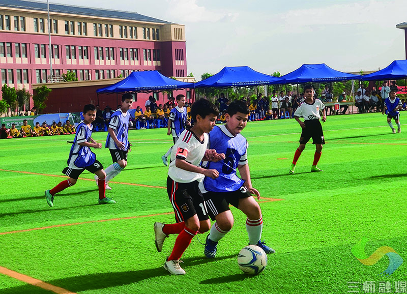 图为 五十四团兴安镇学校学生在塑胶草坪上乐享课间时光。齐宴龙 摄