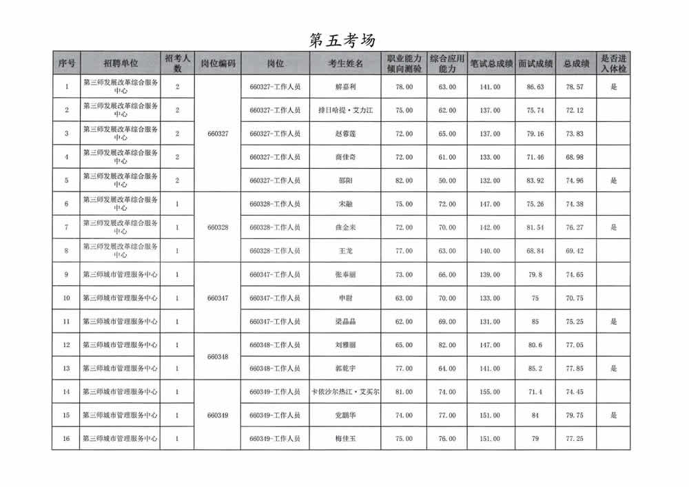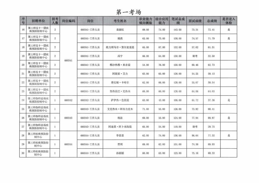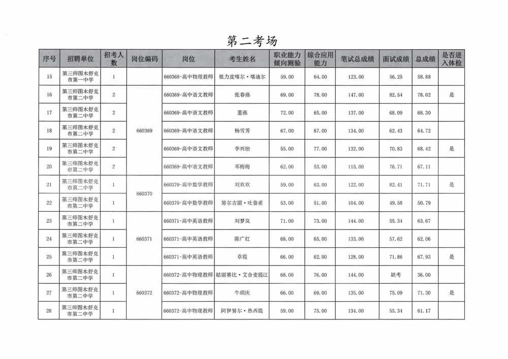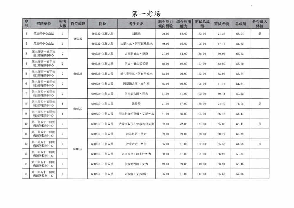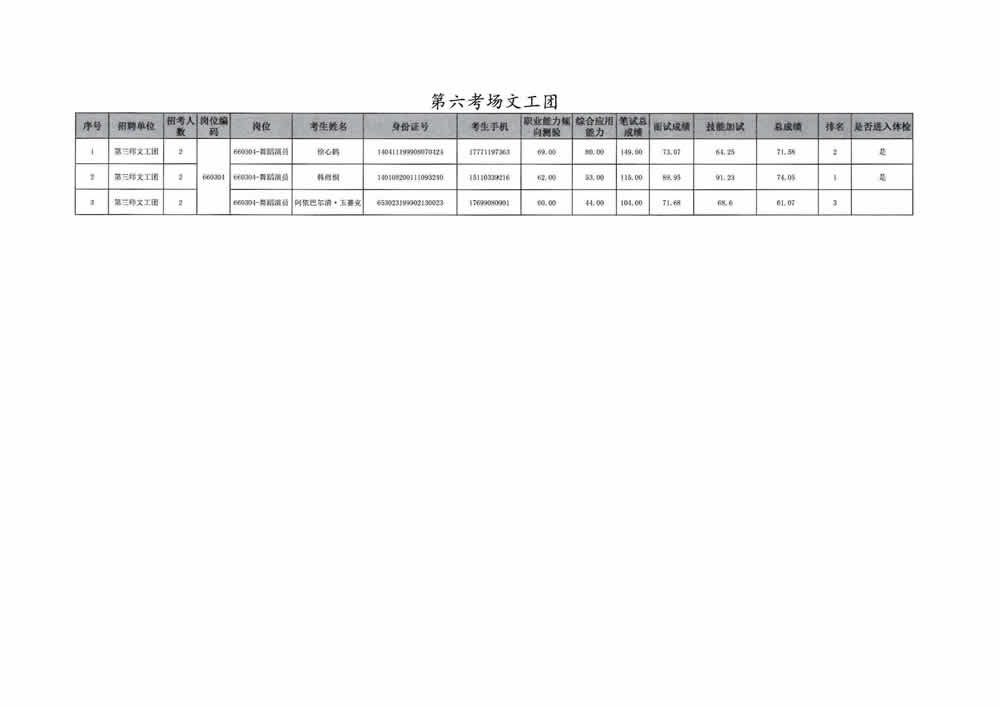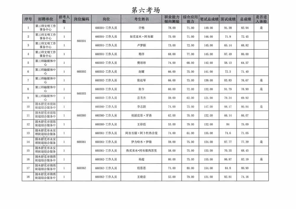 2023年第三师图木舒克市面向社会公开招聘事业单位工作人员总成绩暨进入体检人员名单公告