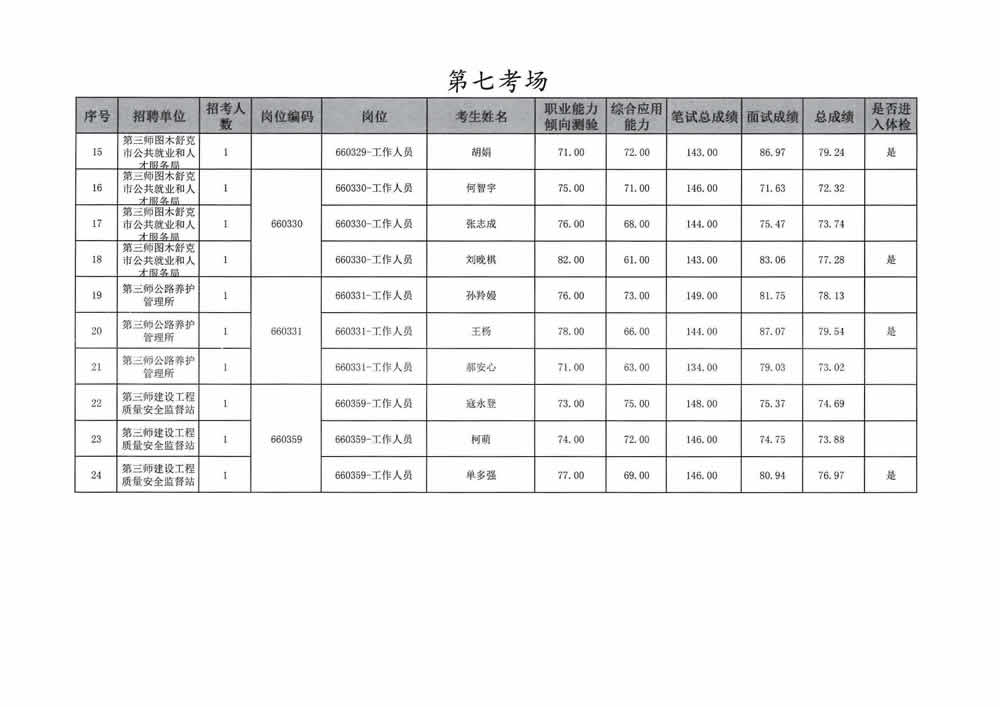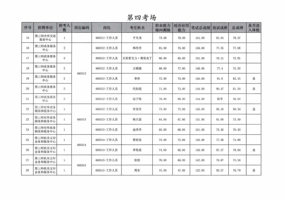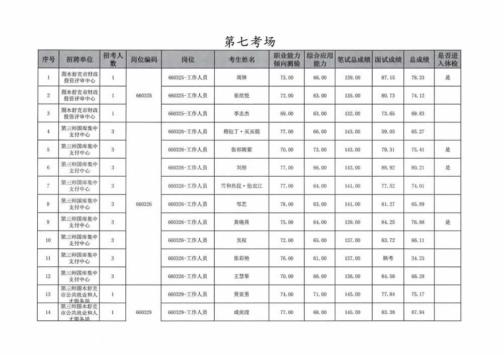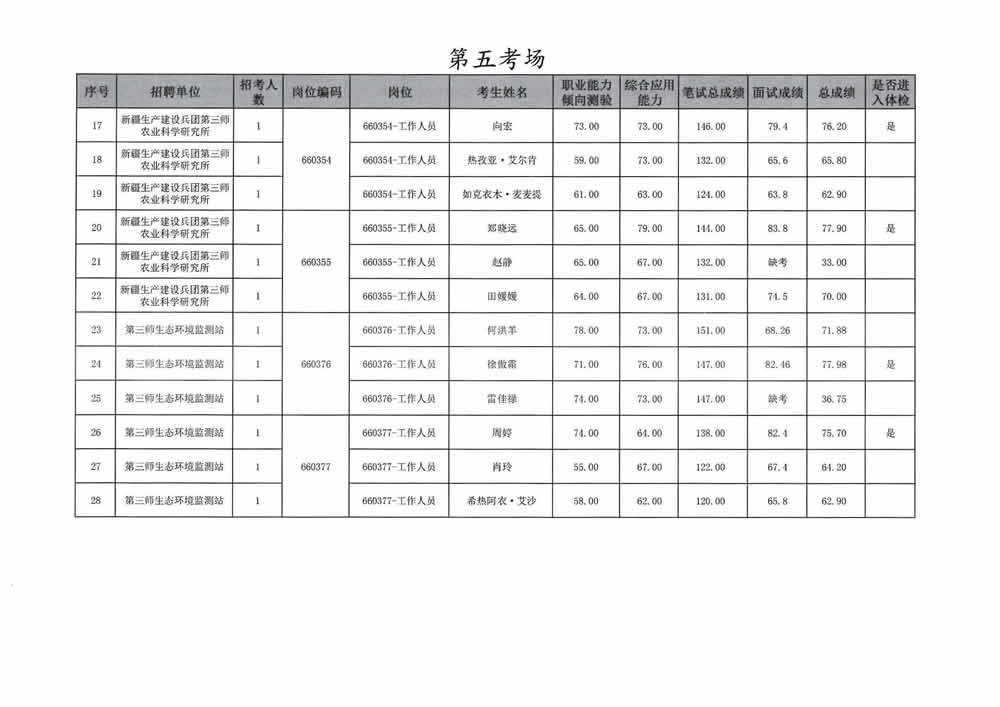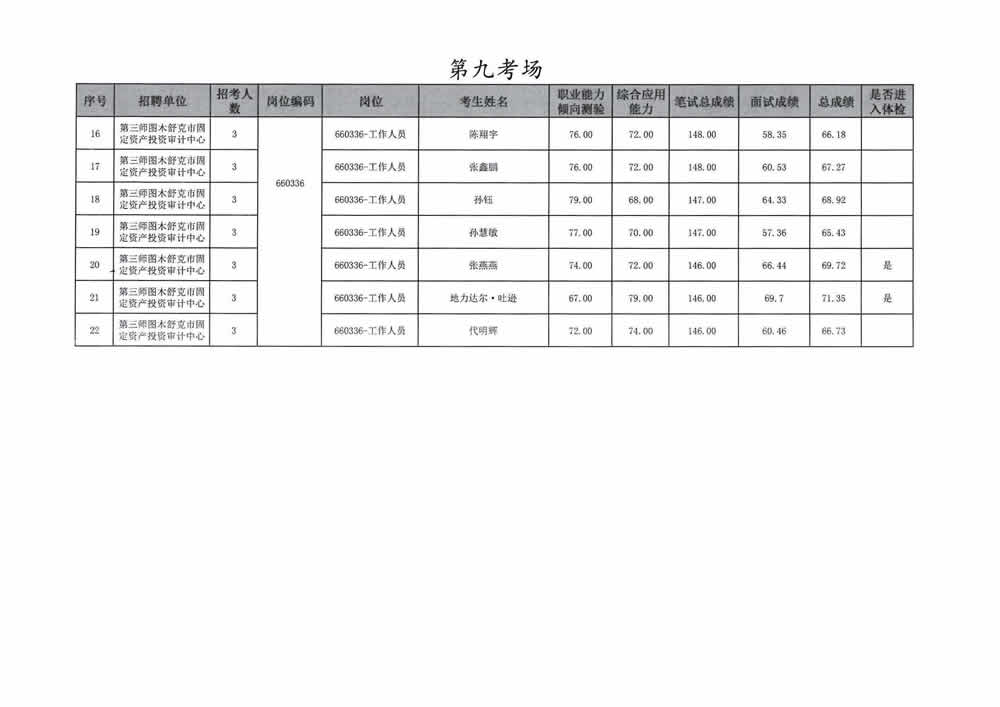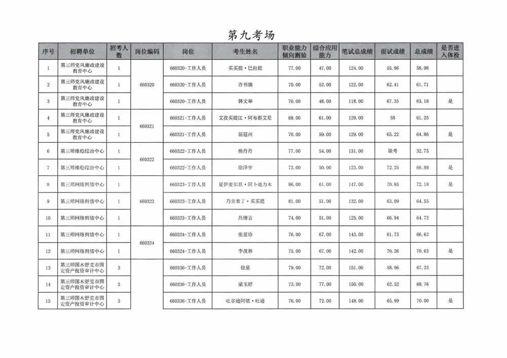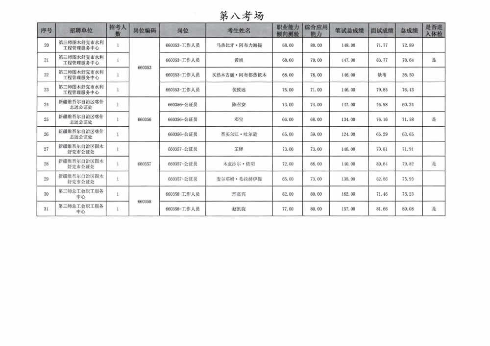 2023年第三师图木舒克市面向社会公开招聘事业单位工作人员总成绩暨进入体检人员名单公告