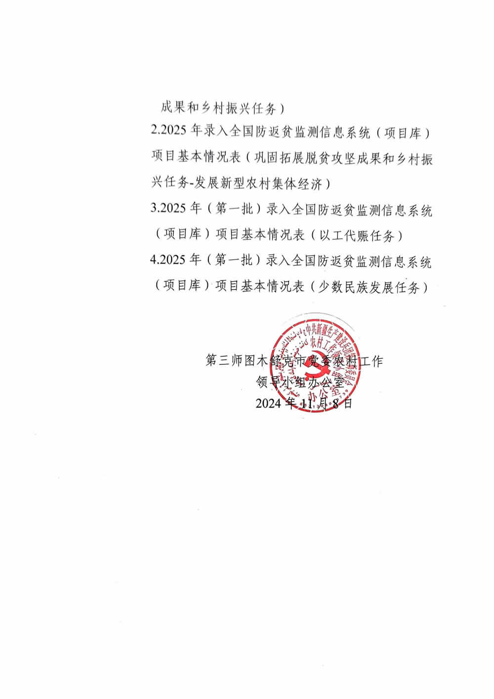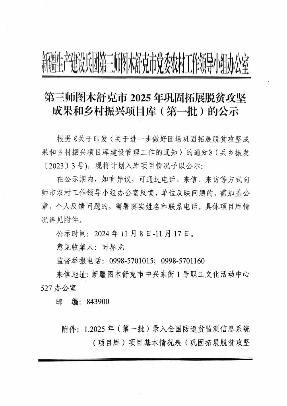 第三师图木舒克市2025年巩固拓展脱贫攻坚成果和乡村振兴项目库(第一批)的公示