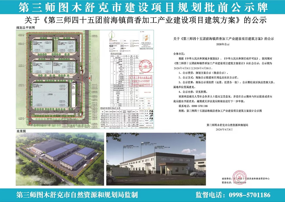 关于《第三师四十五团前海镇茴香加工产业建设项目建筑方案》的公示