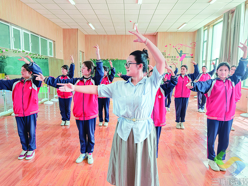 丰富多样的教学场景尽显育人温度。智慧书法课堂上,书法教师站在讲台上,一边细致讲解汉字的笔画笔顺要点,一边深入分析字形字理,书写过程还能实时同步到每个学生课桌上的小屏幕中,让抽象的书法知识变得直观易懂;隔壁的舞蹈教室里,教师正逐一对学生的动作进行指导,从肢体姿态到节奏把控,耐心纠正每一处细节,助力学生提升艺术素养。