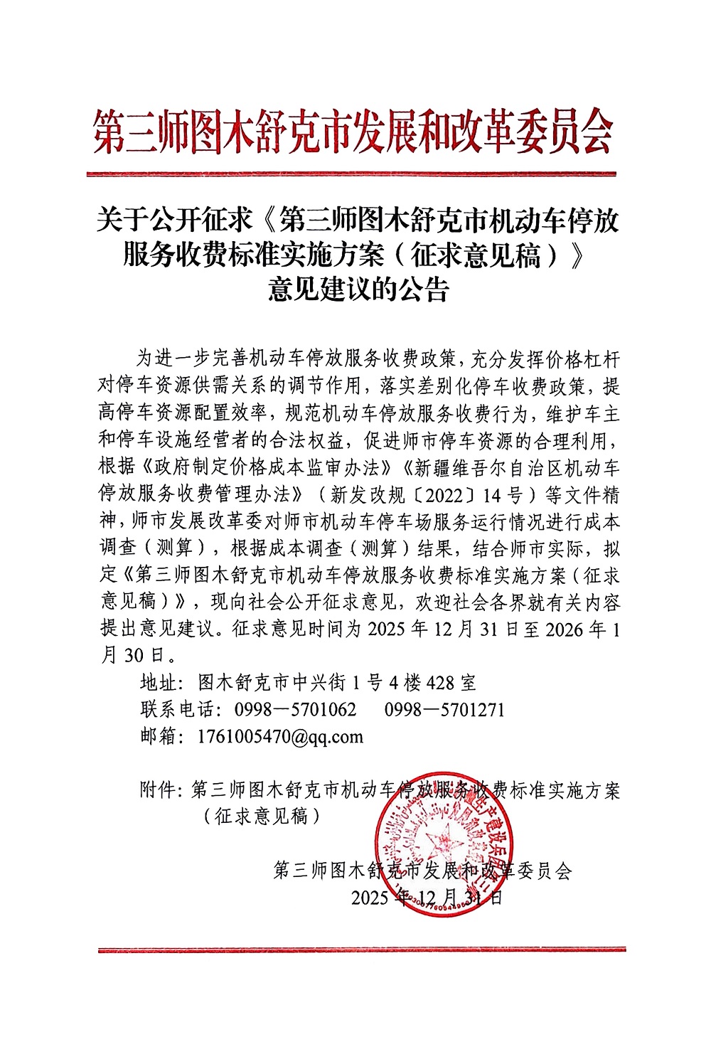 附件:第三师图木舒克市机动车停放服务收费标准实施方案(征求意见稿)
