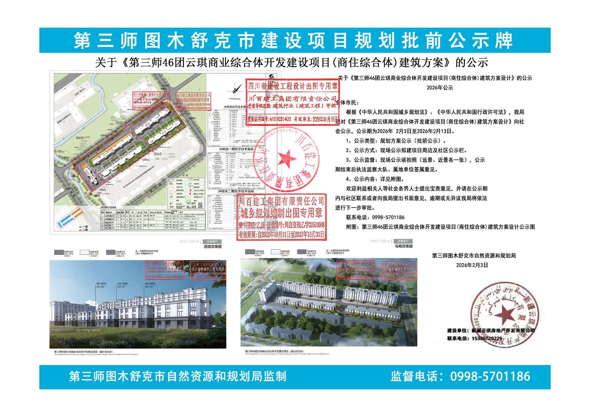 《第三师四十六团云琪商业综合体开发(一期)建筑设计方案》公示