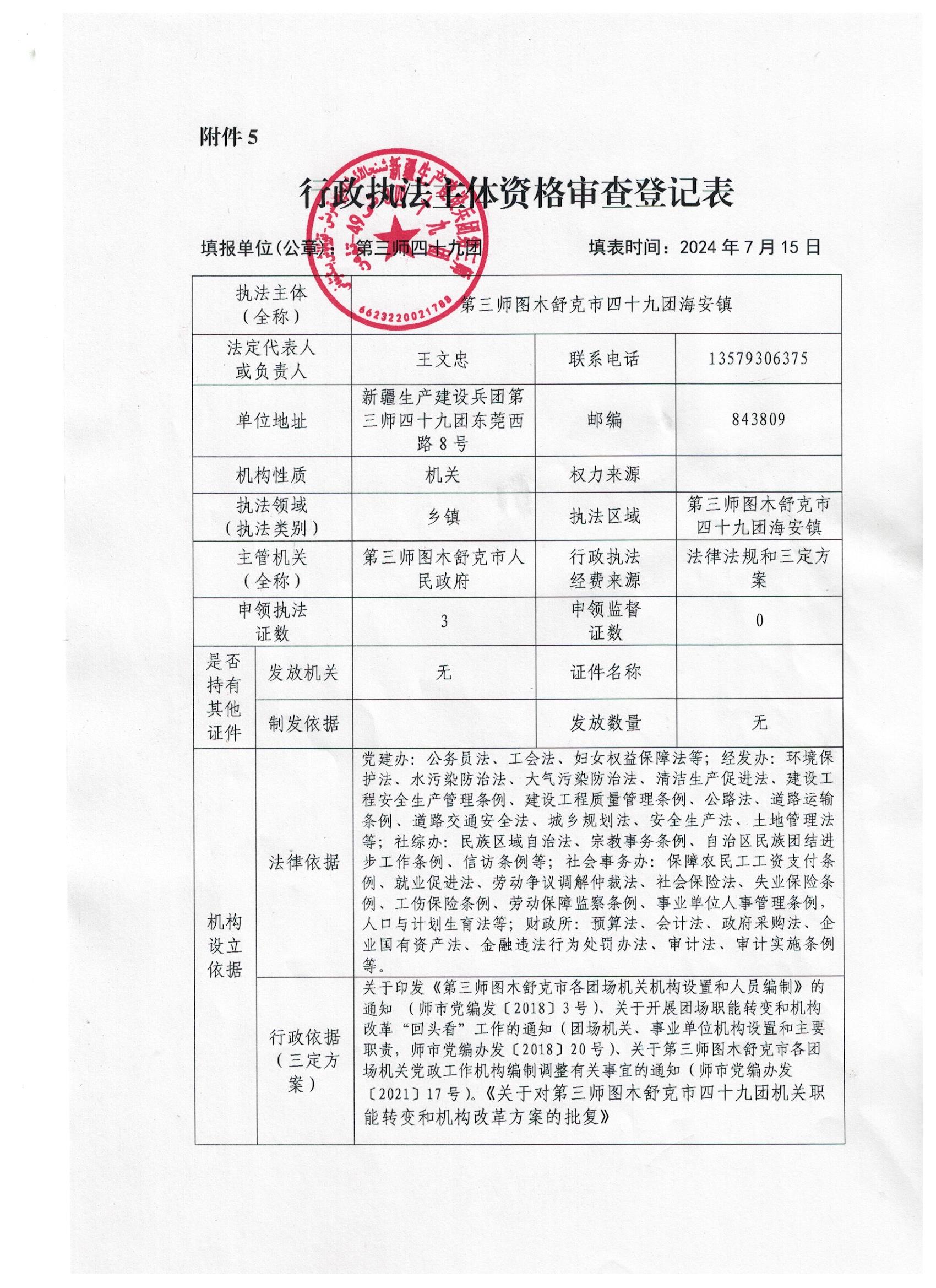 首页 > 专题专栏 > 执法公示 > 团(镇)、街道 > 四十九团(海安镇) > 基本信息 > 主体基本信息