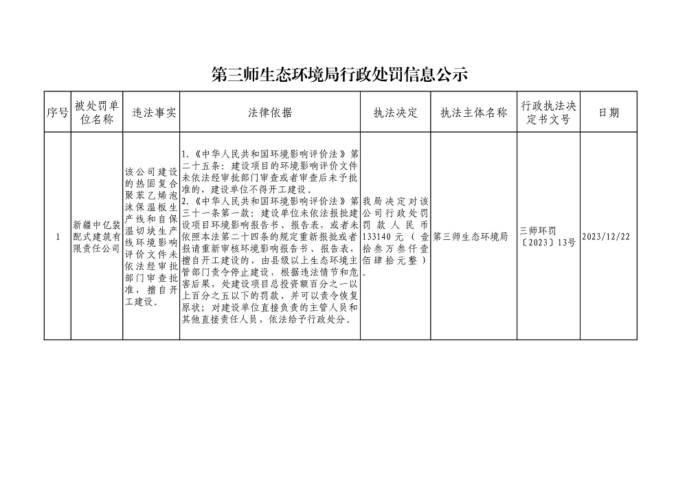 第三师生态环境局行政处罚决定书(三师环罚〔2023〕13号)