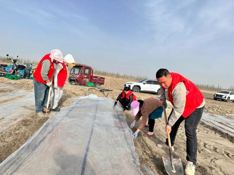 在田间劳作现场,党员和志愿者们不怕苦、不怕累,与老职工们并肩劳作、亲切交流,一边帮忙干农活,一边耐心询问老职工的身体状况和春耕生产中的其他困难,主动宣传棉花种植管护、农机安全使用等农技知识,用贴心服务温暖老职工心田,切实把党支部的关怀送到职工群众心坎上。