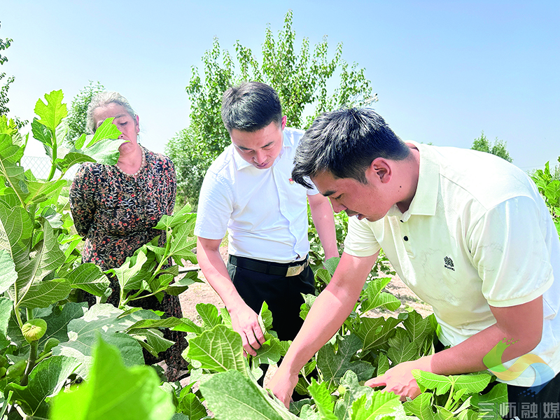 图为 刘勇(中)指导群众种植无花果。
