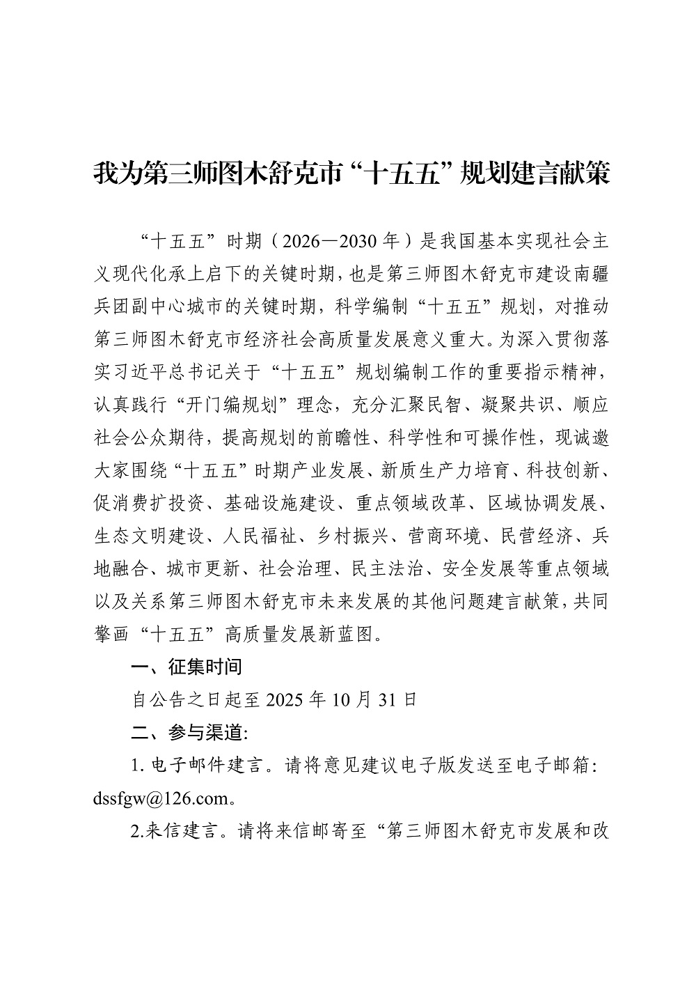 我为第三师图木舒克市“十五五”规划建言献策