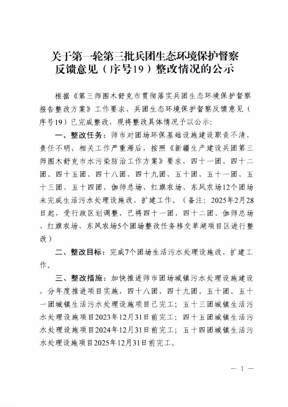 关于第一轮第三批兵团生态环境保护督察反馈意见(序号19)整改情况的公示