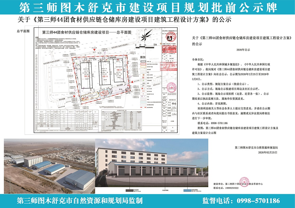 第三师四十四团食材供应链仓储库房建设项目公示