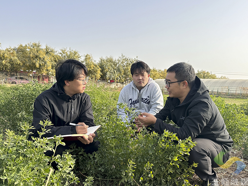 自2022年建院起,苜蓿科技小院联合石河子大学、中国农业大学、国家植物研究所共建苜蓿资源圃,累计引进国内外品种66份、资源580份。科研人员通过对比不同品种苜蓿的生长性状与产量,已筛选出5个适配师市气候与土壤条件的优质品种。