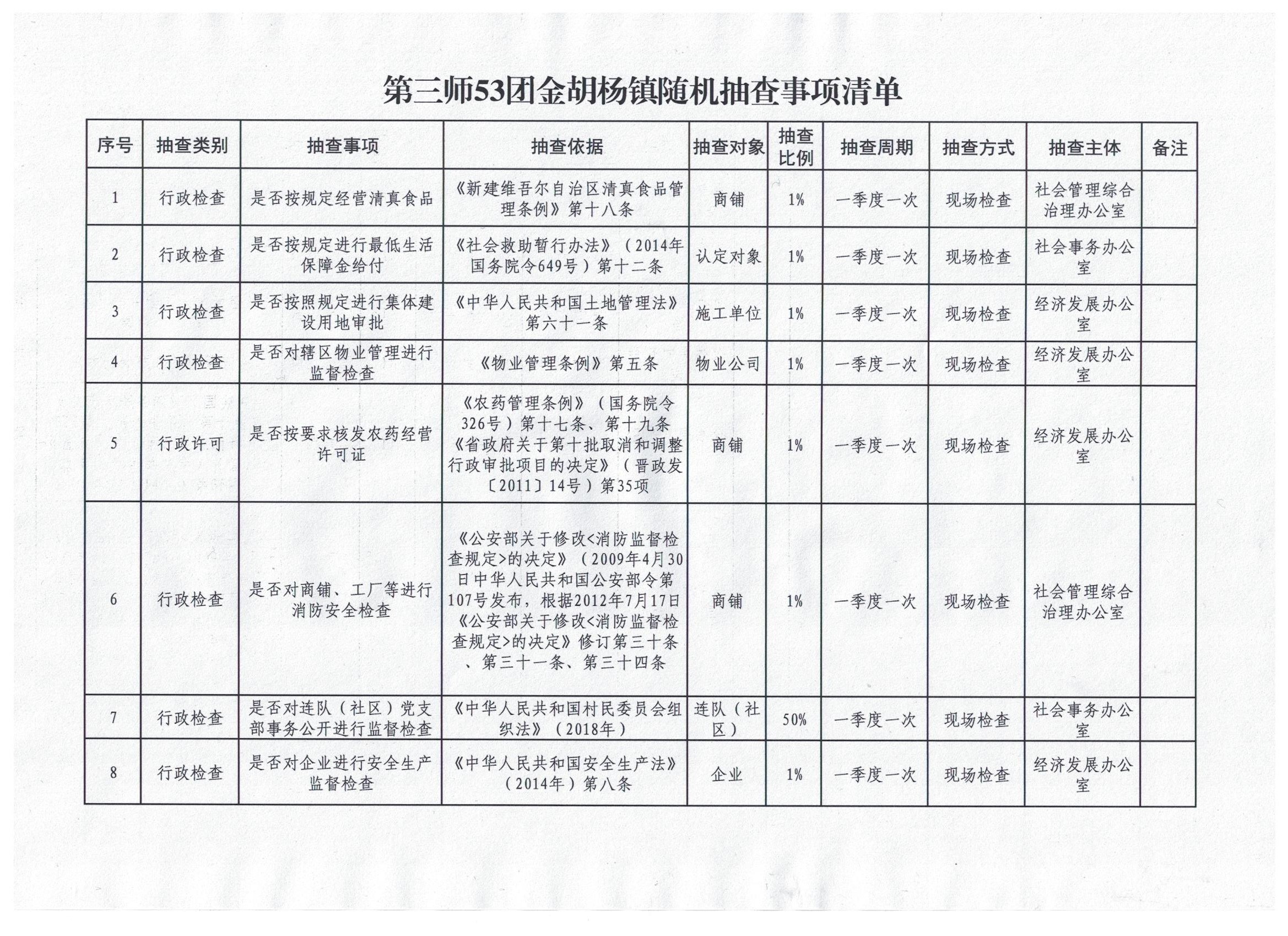 首页 > 专题专栏 > 执法公示 > 团(镇)、街道 > 五十三团(金胡杨镇) > 事前公示 > 随机抽查事项清单